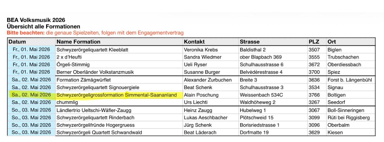 19.September 2026 Ländlertreffen Gemeindesaal Zweisimmen