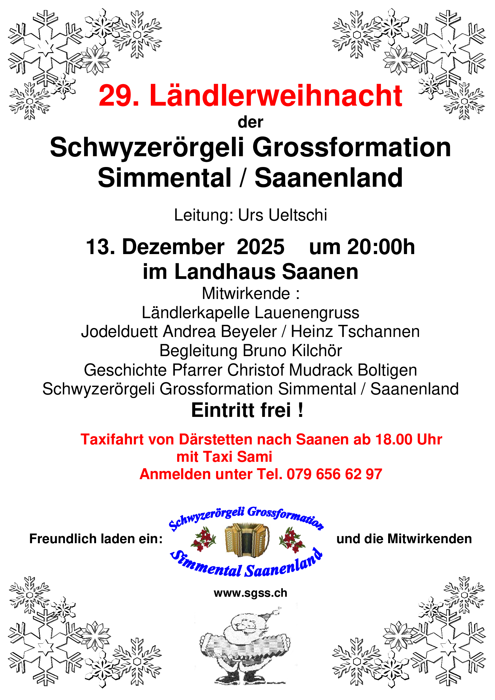 13.12.2025 Ländlerweihnachten Landhaus Saanen
