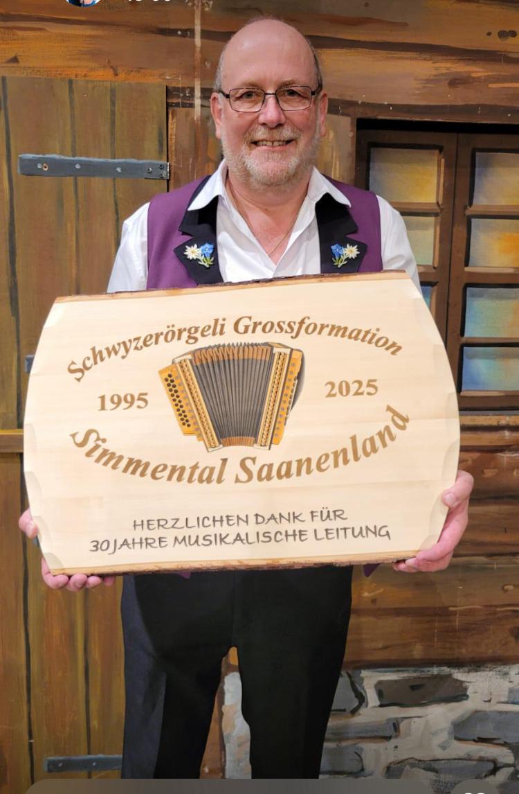 Am 41. Ländlertreffen in Zweisimmen durfte die Schwyzerörgeli-Grossformation Simmental-Saanenland ein ganz besonderes Jubiläum feiern: Urs Ueltschi wurde für 30 Jahre musikalische Leitung geehrt. Nachfolgend ein Rückblick mit dem Geehrten, der seit 1995 mit unermüdlichem Engagement, musikalischem Feingefühl und menschlicher Wärme an der Spitze der Formation steht.